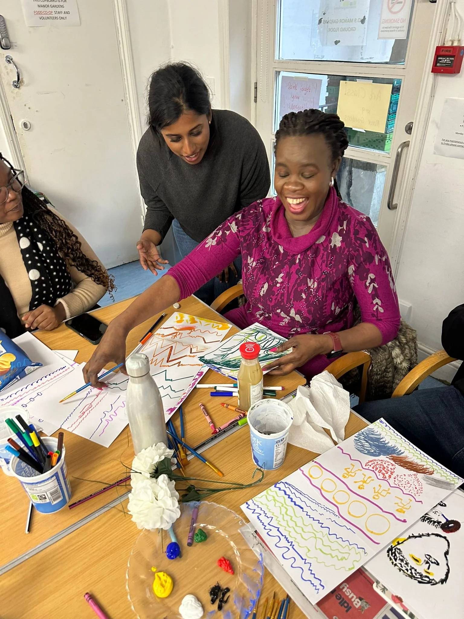 From the outset, we felt closely aligned in our shared commitment to social change and belief in the power of care-led, community-focused work. What stood out to us most was the genuine personal attention given to members, from providing essential resources to building trusting, supportive relationships. Through working together and delivering in-person creative workshops, we’ve seen first-hand the warm, welcoming atmosphere that exists between the team and members, and we’ve felt incredibly grateful to be welcomed into their space.